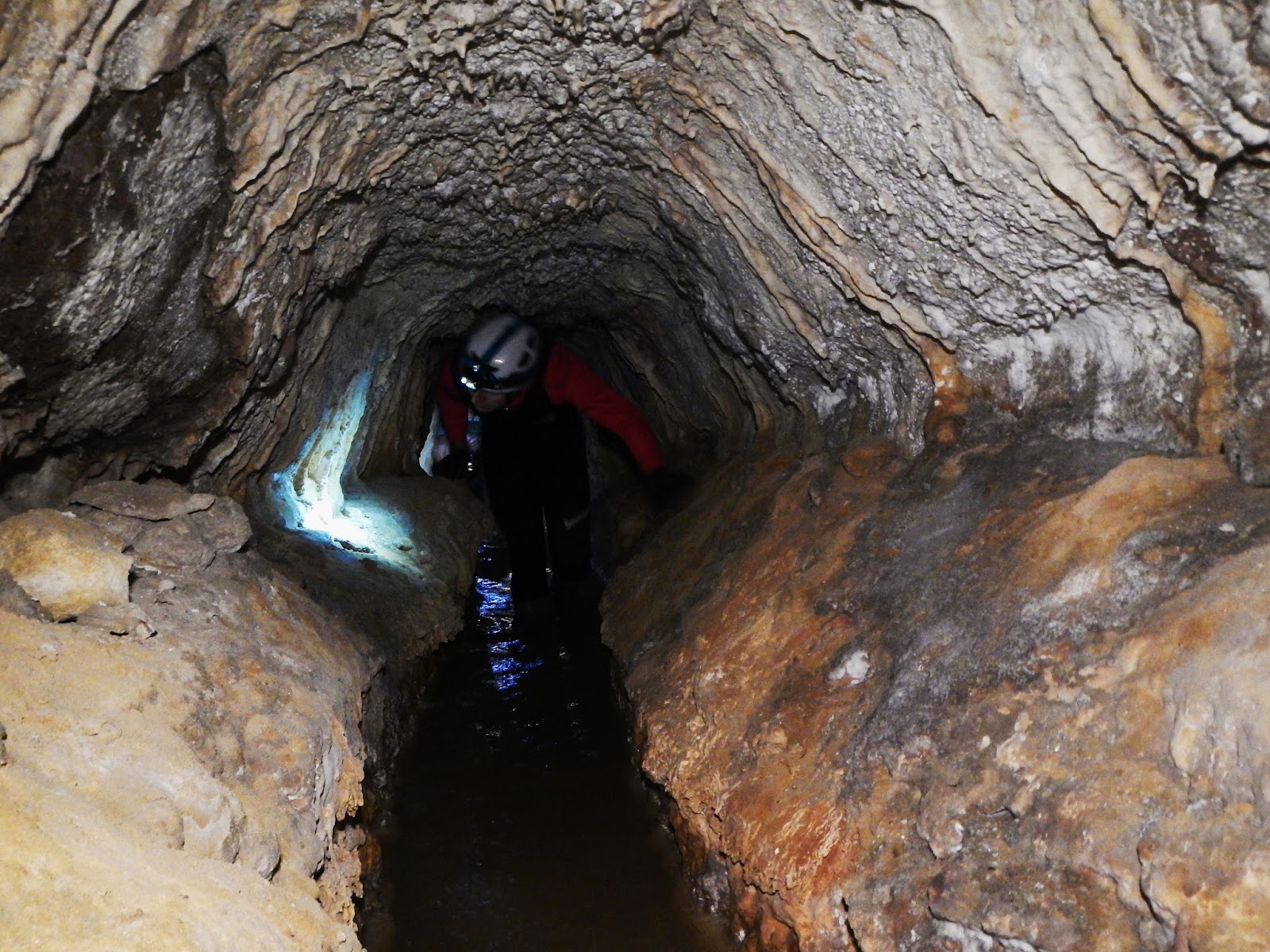 que se han amontonado sedimentos, sobre las paredes y techos se han formado bonitas concreciones calcáreas. La curiosa morfología,